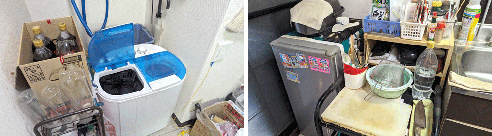 洗濯機とワゴン、シンクからカラーBOX、んで冷蔵庫までのフィット感