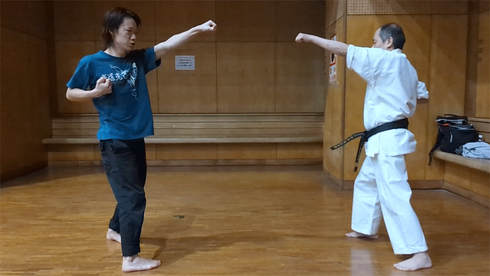 昨日の稽古の流れ @ 準備運動 A 基本手技・足技 初級 B 移動稽古 初級から抜粋 C 相対稽古 ビッグミット 30秒×3セット D 顔面パンチへの目慣れ 〜 スゥエー、ウェービング、ダッキング