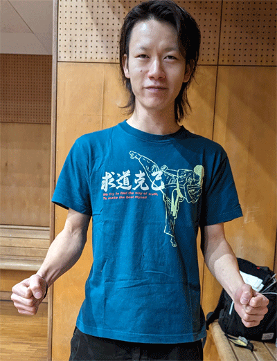 なんと15〜6年前に制作した空手道正義塾Tシャツ、 N川君は今でも普通に着こなしていました。 僕ですらもう一枚も残ってないのに、物持ち良過ぎです(笑)。 なんか感動しました。 |