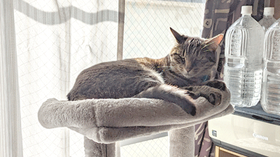 ヤツを飼い始めた当初は、まだ慣れてなかったせいか直接何かし掛けて来るってこたーなく、 要求がある時(推測だけど)はただ鳴くだけだった、 でも最近は、まるで人間の感情があるかの様に、その感情を伝えるかの様に、ヤツなりの使い分けをしてるみたいなんであります。 あと、以前にもお話したけども、 キャットタワーのてっぺんで窓の外を見ながらウトウトしてる時に、 例えばカーテンを閉めようと後ろから近づいた時に、ホント人間みたいに「ん?何?」って言いながら首だけ振り向く、 これも、もしや猫にも人間の行動や感情が解んのかなあなんて思うんだよね。