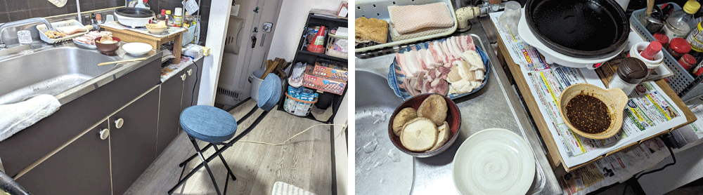 てな訳でヤツはリビングに残し、焼肉パーティーはキッチンでやりました。