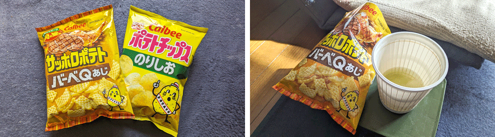 手元にはおやつも用意(コップが割れたんでカップラーメンの容器で代用してます)。