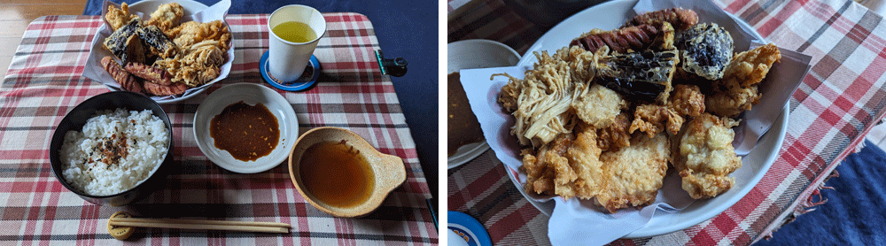 さて皆さん。 大きめの鶏肉でたくさん出来た大好物の鶏天、それに今回は乏しいと言えども他の食材も揚げた、 茄子の天ぷらなんてもー美味しいに決まってる、 …それはホントにそうなんだけども、僕はこの出来上がりを見て、ちょっと意気消沈しちゃいました。